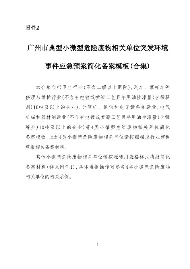 附件5. 典型小微型危险废物相关单位突发环境事件应急预案简化备案模板(合集).docx