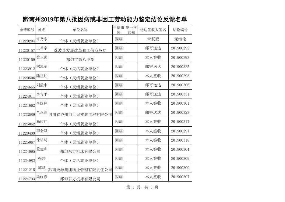 黔南州2019年第八批因病或非因工劳动能力鉴定结论反馈名单.xls