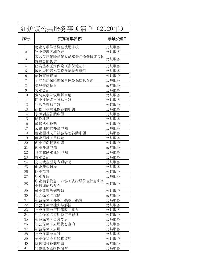 重庆市永川区红炉镇公共服务事项清单(2020年).xlsx