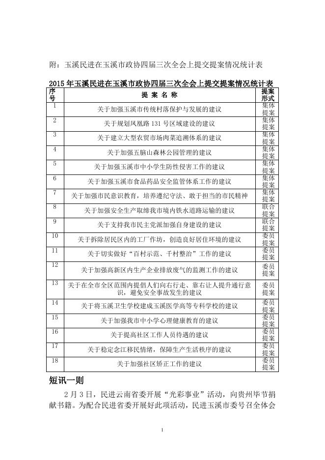 [DOC格式]:玉溪民进在玉溪市政协四届三次全会上提交提案情况统计表附件.doc