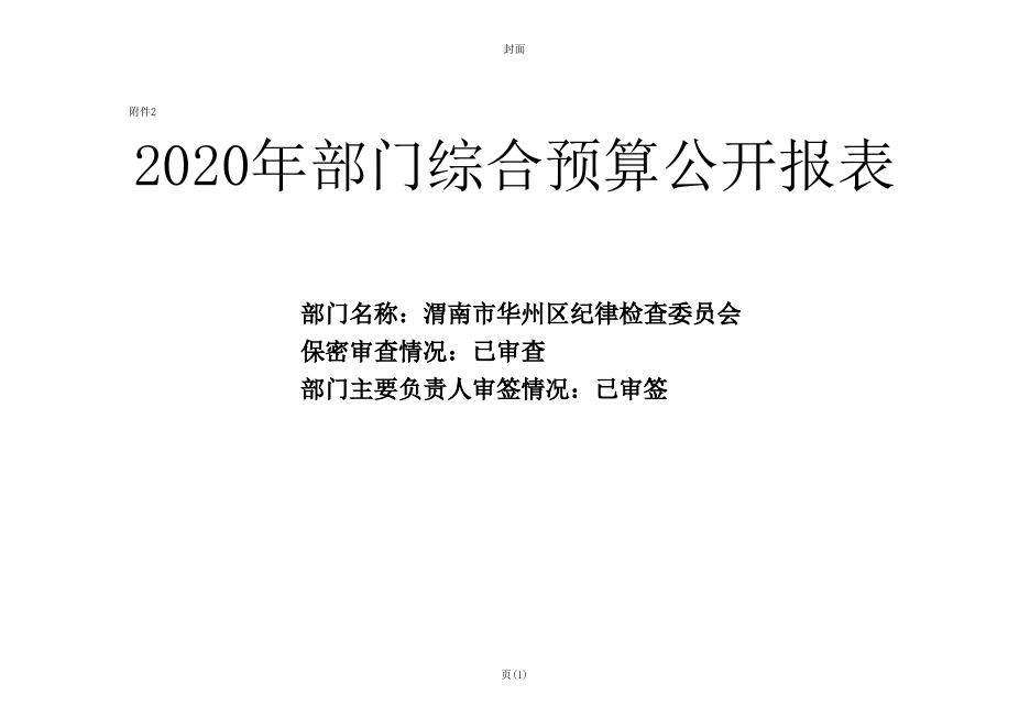 中国共产党渭南市华州区纪律检查委员会 2020年部门综合预算公开报表.xls