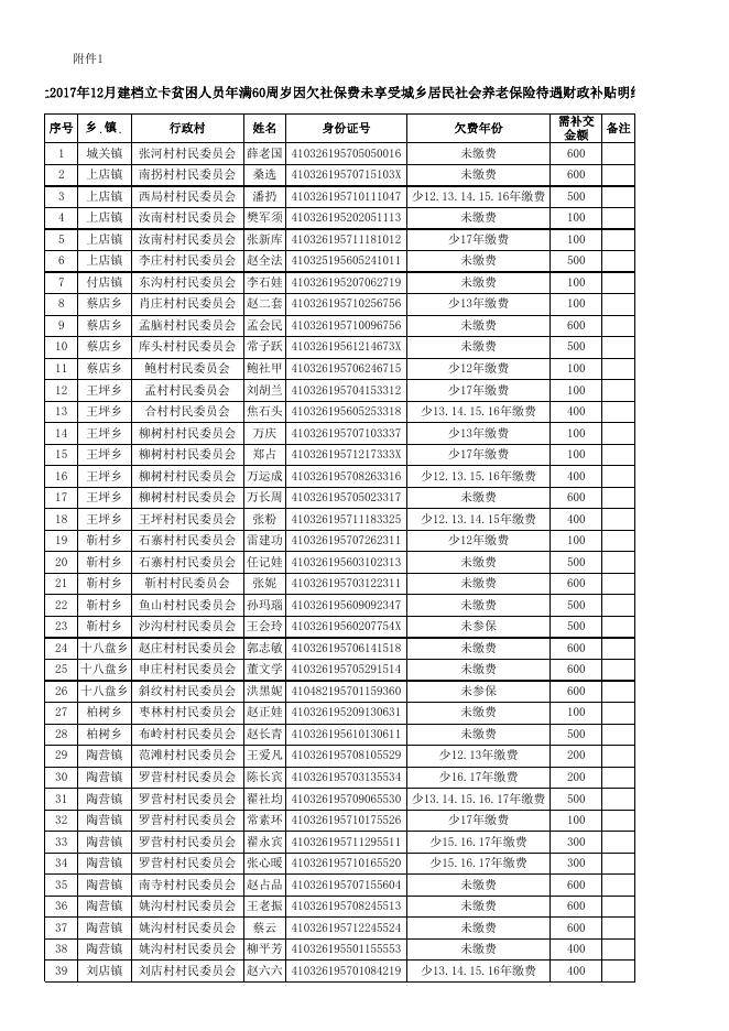 附件1:2017年建档立卡贫困人口年满60周岁财政代缴基本养老保险费人员名册.xls