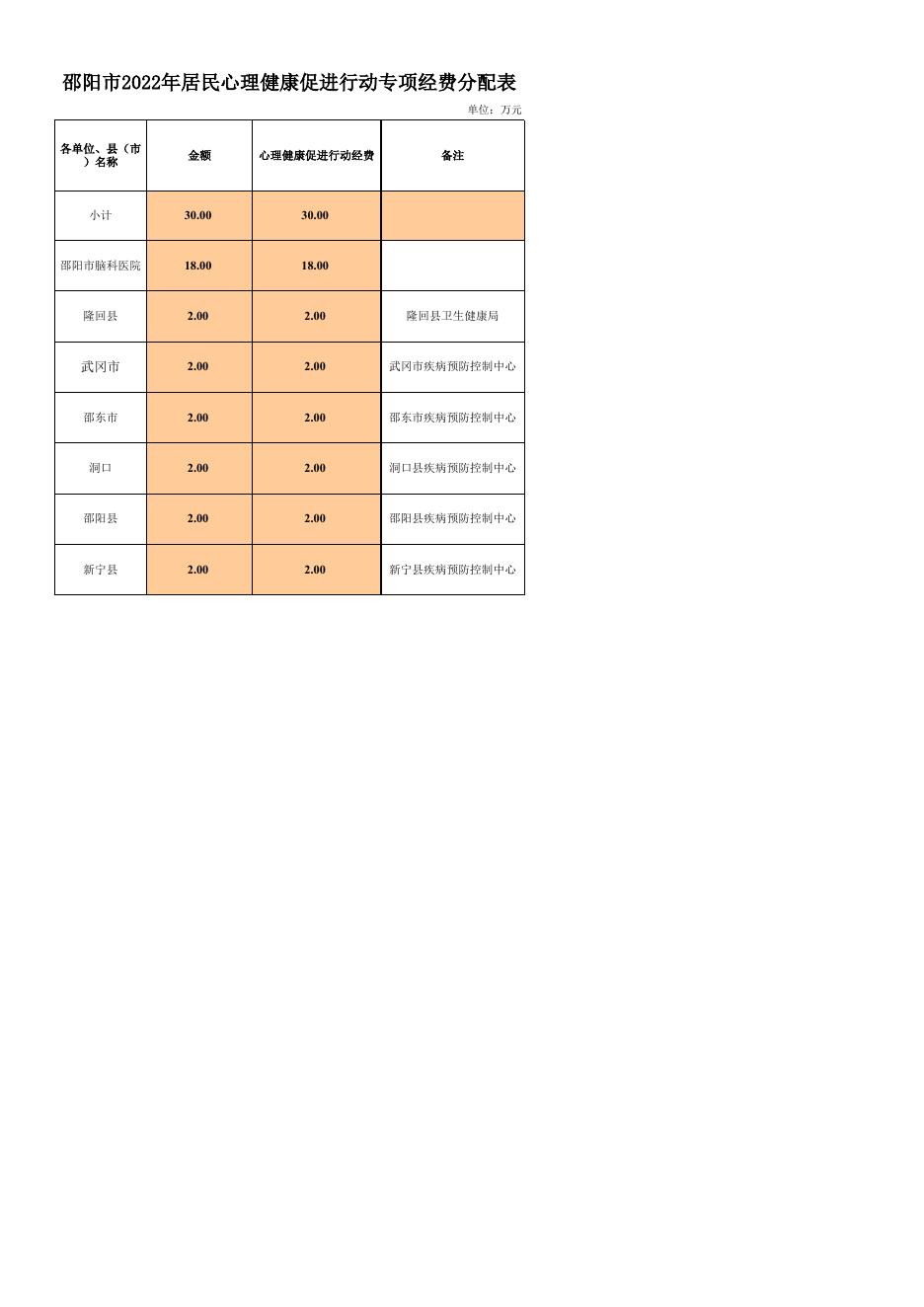 邵阳市2022年居民心理健康促进行动专项经费分配表.xls