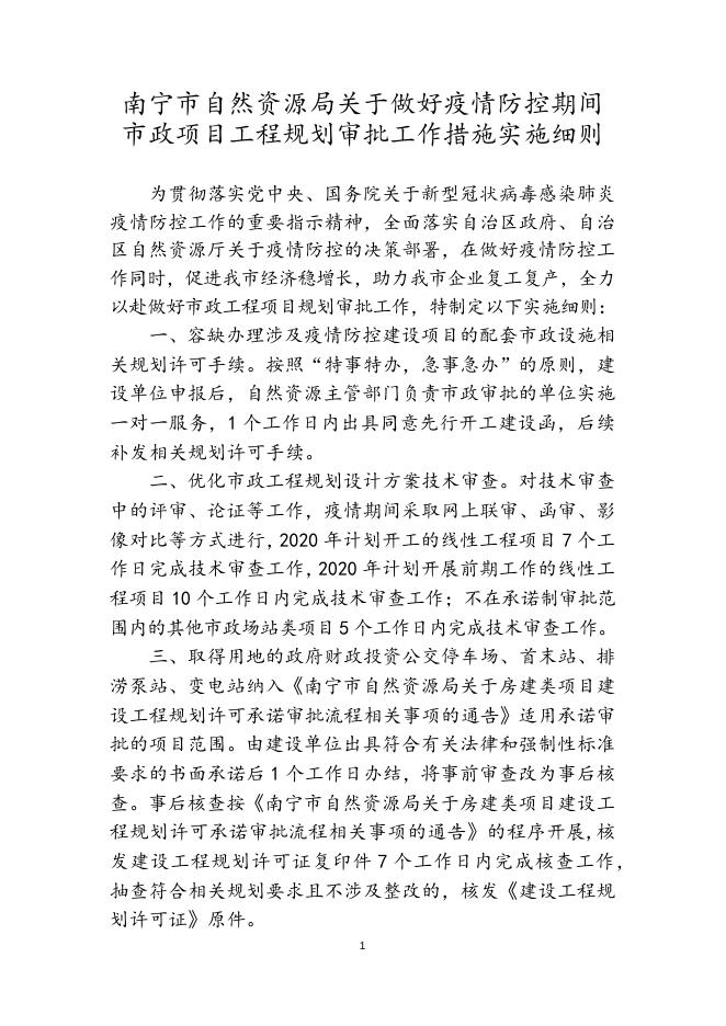 03-南宁市自然资源局关于做好疫情防控期间市政项目工程规划审批工作措施的实施细则.docx