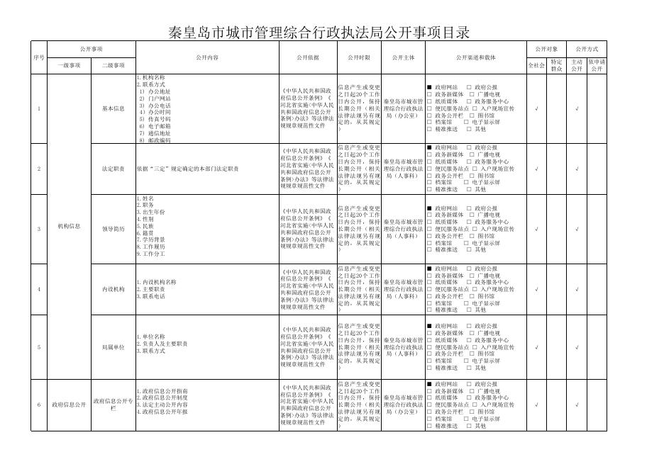 秦皇岛市城市管理综合行政执法局公开事项目录.xls