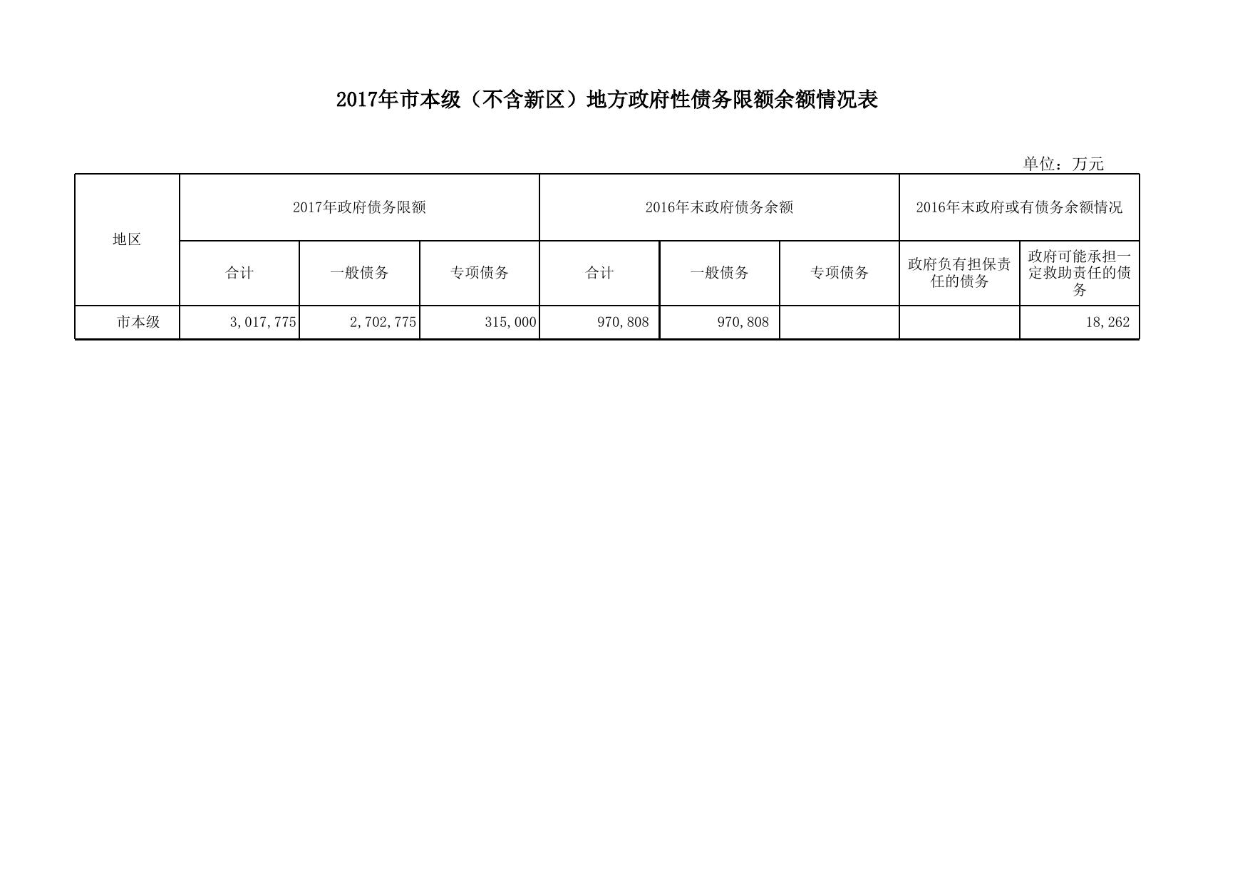 2017年市本级(不含新区)地方政府性债务限额余额表.xls