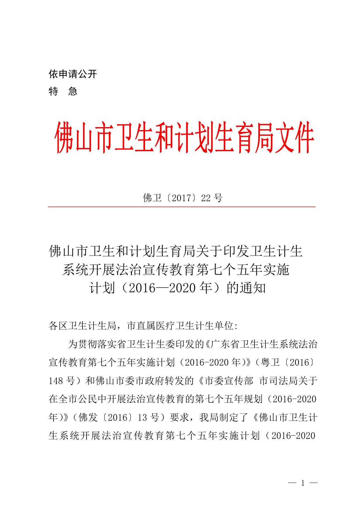 关于印发卫生计生系统开展法治宣传教育第七个五年实施计划(2016—2020年)的通知.doc