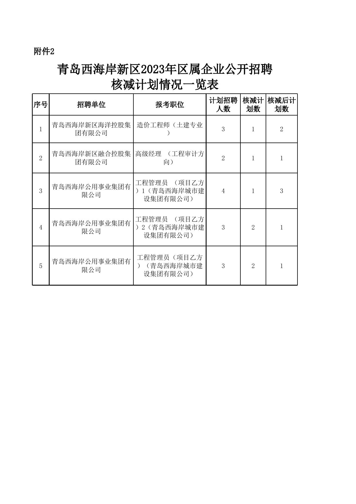 附件2-青岛西海岸新区2023年区属企业公开招聘核减计划情况一览表 (1).xls