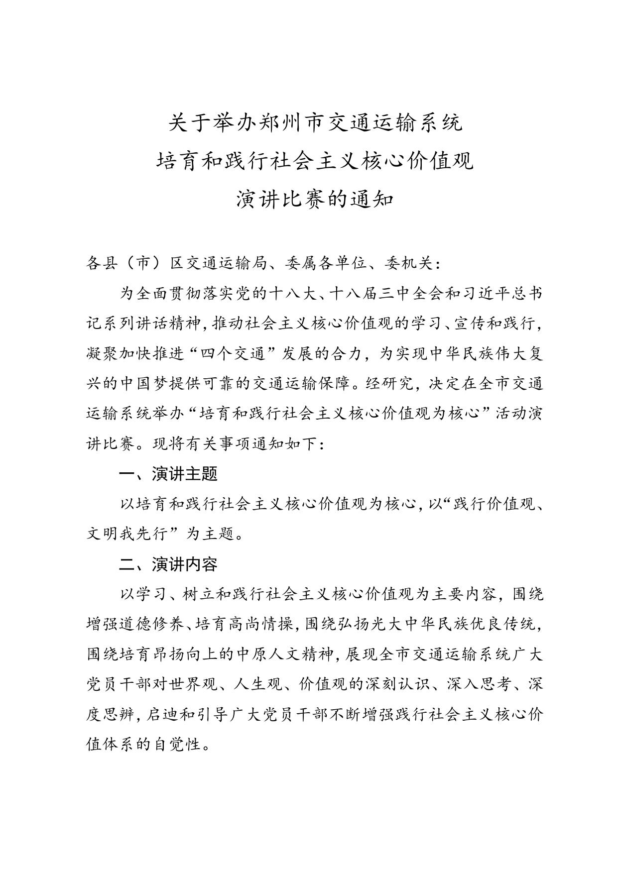 关于举办社会主义核心价值演讲比赛.doc