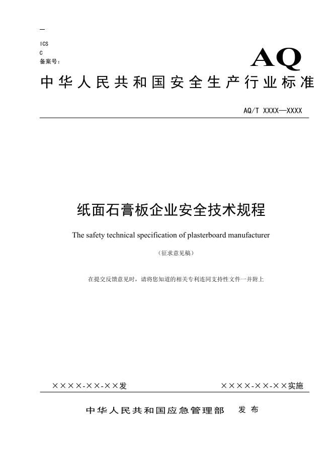 7.纸面石膏板企业安全技术规程(征求意见稿)和编制说明.doc