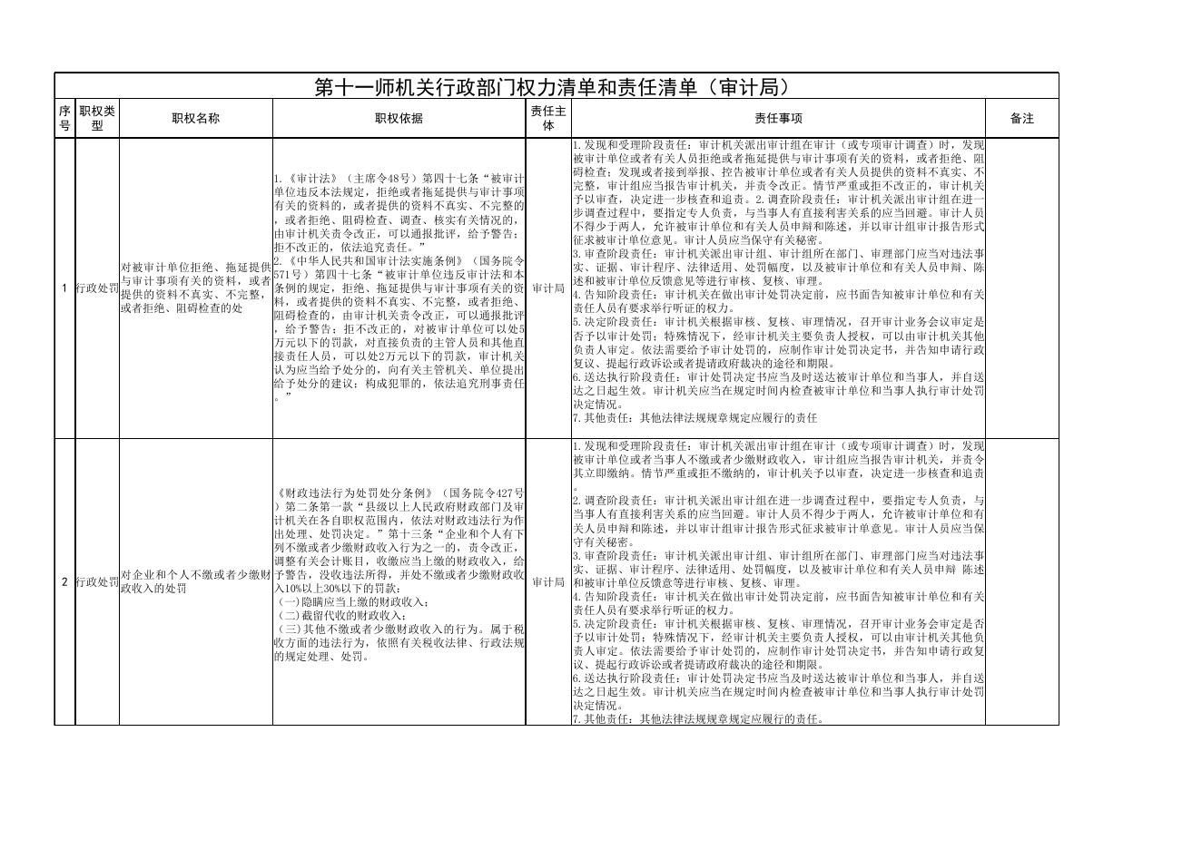 第十一师机关行政部门权力清单和责任清单(审计局).xls