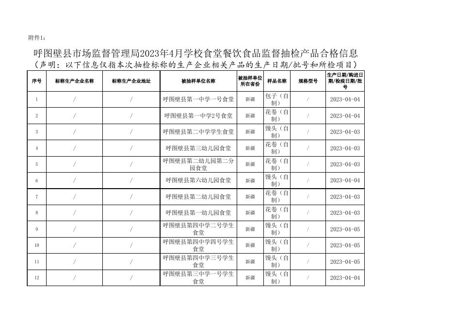 附件2-呼图壁县市场监督管理局2023年4月学校食堂餐饮食品监督抽检合格产品信息.xlsx