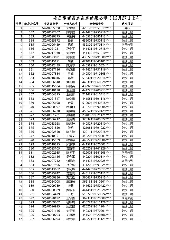安居型商品房选房结果公示(12月27日上午).xls