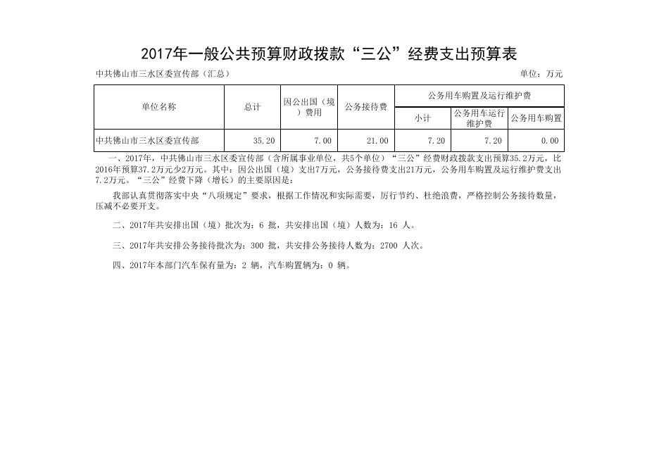 2017年一般公共预算财政拨款“三公”经费支出预算表(中共佛山市三水区委宣传部汇总).xls