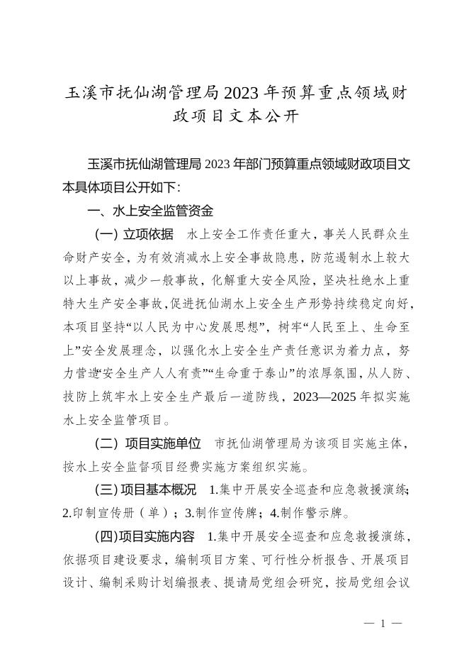 附件2:玉溪市抚仙湖管理局2023年预算重点领域财政项目文本公开.doc