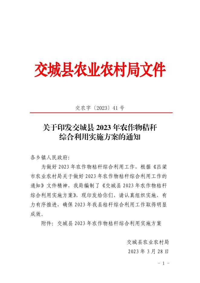 交城县农业农村局关于印发交城县2023年农作物秸秆综合利用实施方案的通知.pdf