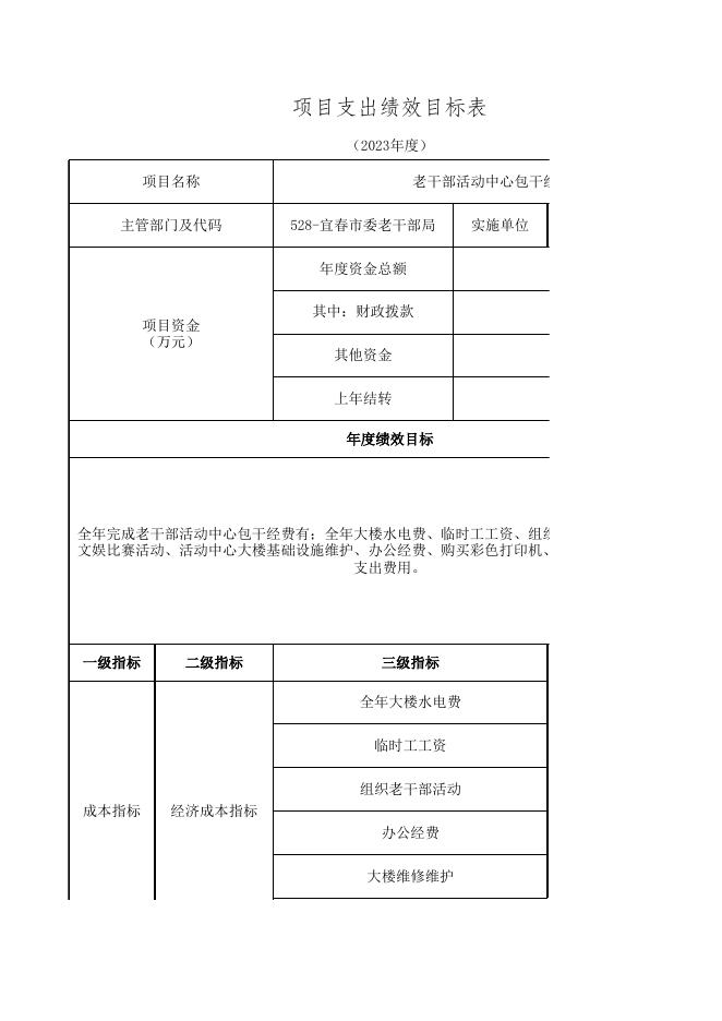 宜春市老干部活动中心项目支出绩效目标表.xls