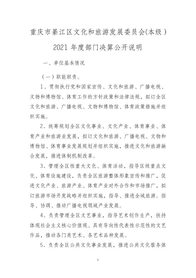 重庆市綦江区文化和旅游发展委员会(本级)2021年决算公开说明.doc