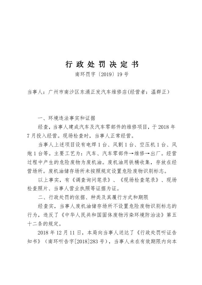 广州市南沙区东涌正发汽车维修店(经营者:温群正).doc