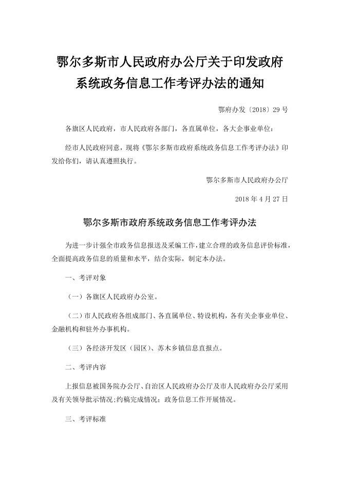 鄂尔多斯市人民政府办公厅关于印发政府系统政务信息工作考评办法的通知.docx