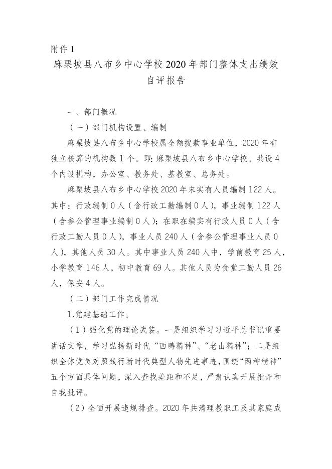 附件1 麻栗坡县八布乡中心学校2020年部门整体支出绩效自评报告.docx