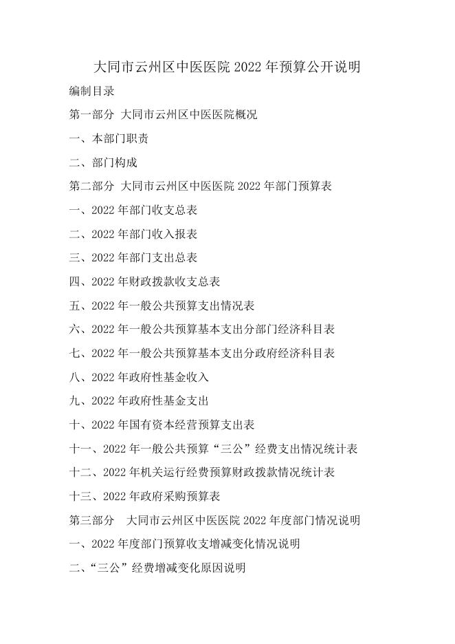 大同市云州区中医医院2022年预算公开说明.doc