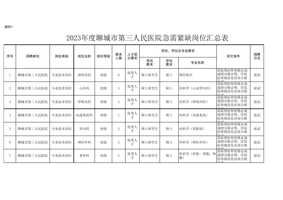 附件1:聊城市第三人民医院急需紧缺岗位汇总表.xls