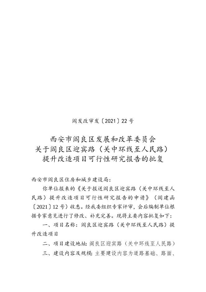 阎发改审发22号2021.2.5阎良区迎宾路(关中环线至人民路)提升改造项目(可研).doc