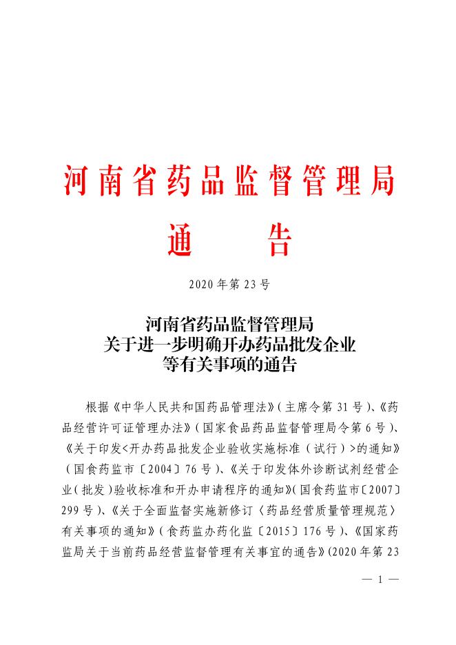 3河南省药品监督管理局关于进一步明确开办药品批发企业等有关事项的通告.pdf