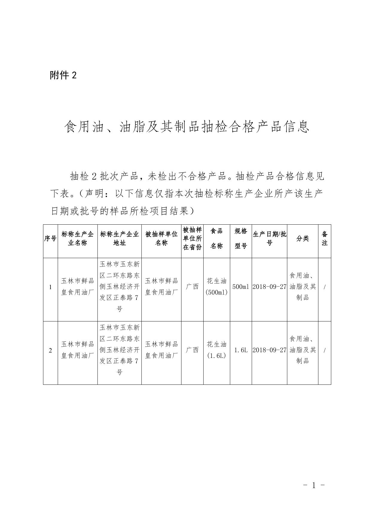 2.食用油、油脂及其制品监督抽检合格产品信息.docx