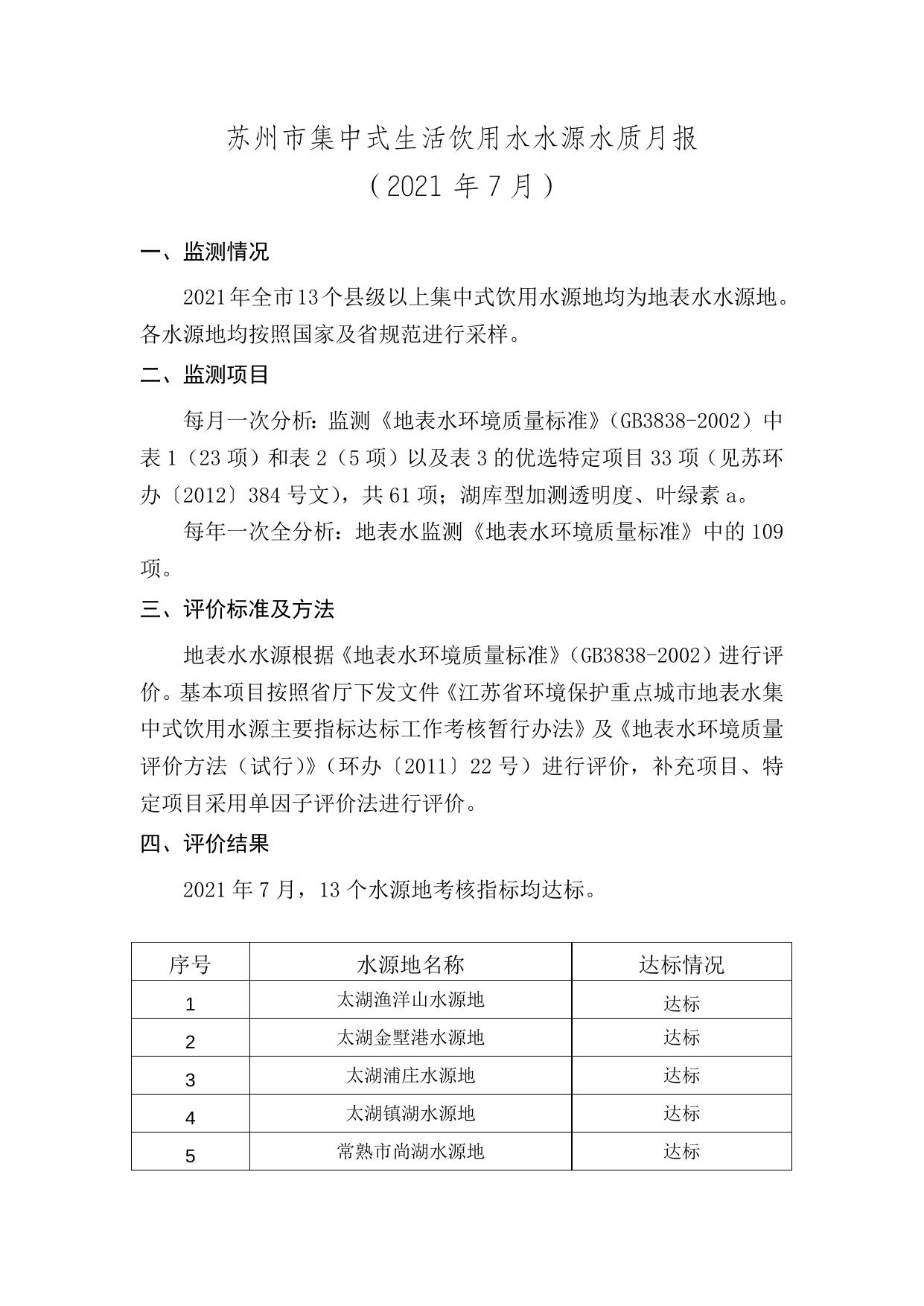 苏州市集中式生活饮用水水源水质状况报告(2021年7月).docx