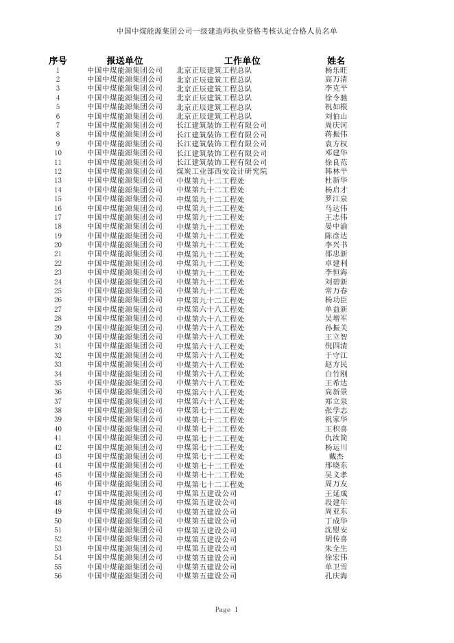 中国中煤能源集团公司一级建造师执业资格考核认定合格人员名单(137人).xls