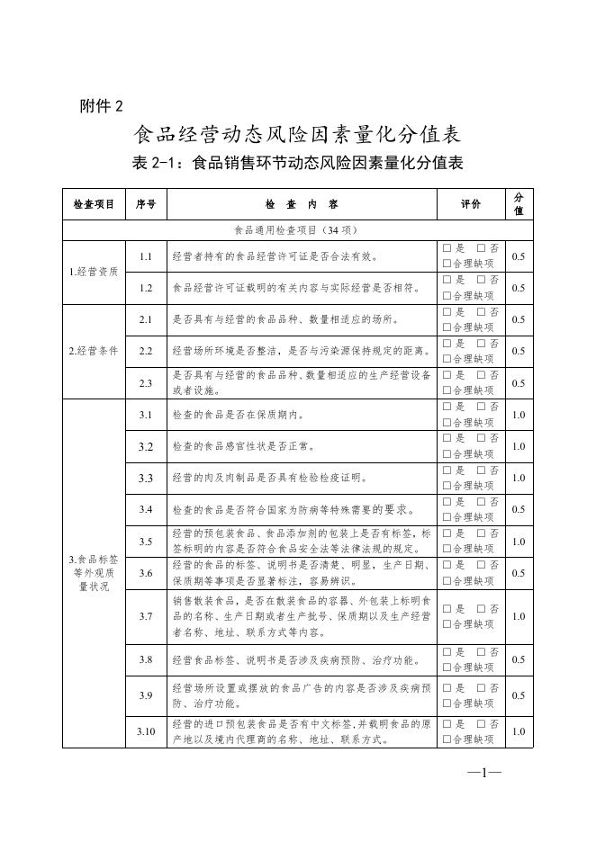 新食药监函[2018]288号(关于征求《新疆维吾尔自治区食品经营风险分级管理办法(试行)》(征求意见稿)意见的通知)附件2.doc
