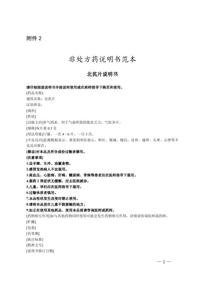 非處方藥説明書範本.doc