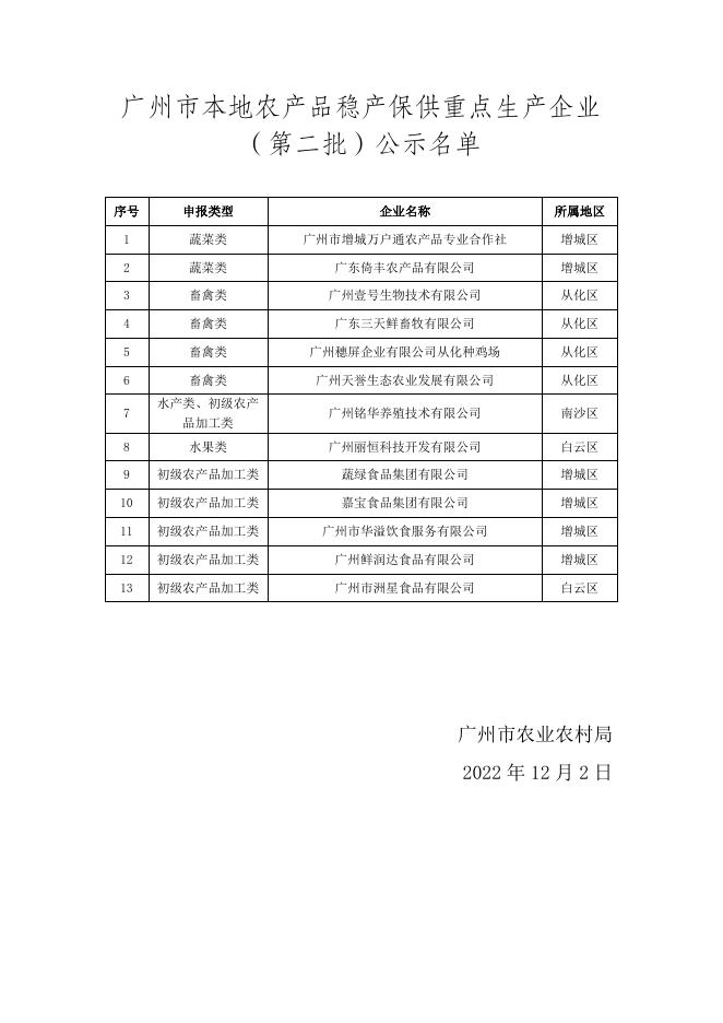广州市本地农产品稳产保供重点生产企业(第二批)公示名单(13家).doc