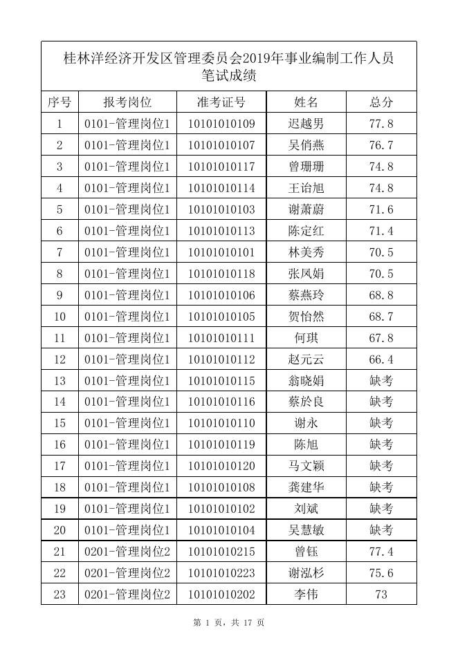 附件1.桂林洋经济开发区管理委员会2019年事业编制工作人员笔试成绩.xlsx