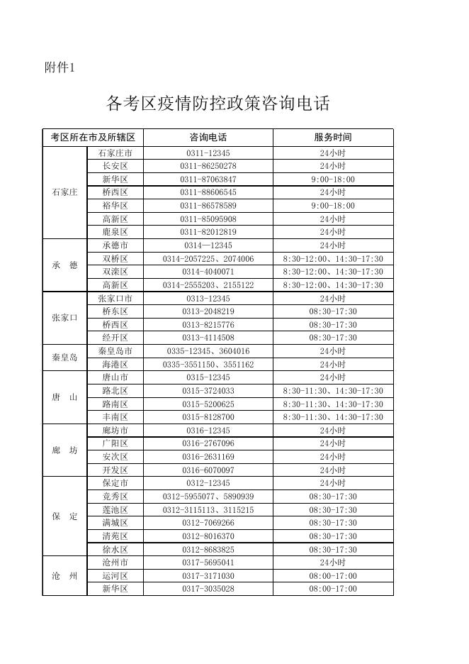 附件:1.各考区疫情防控政策咨询电话.xls