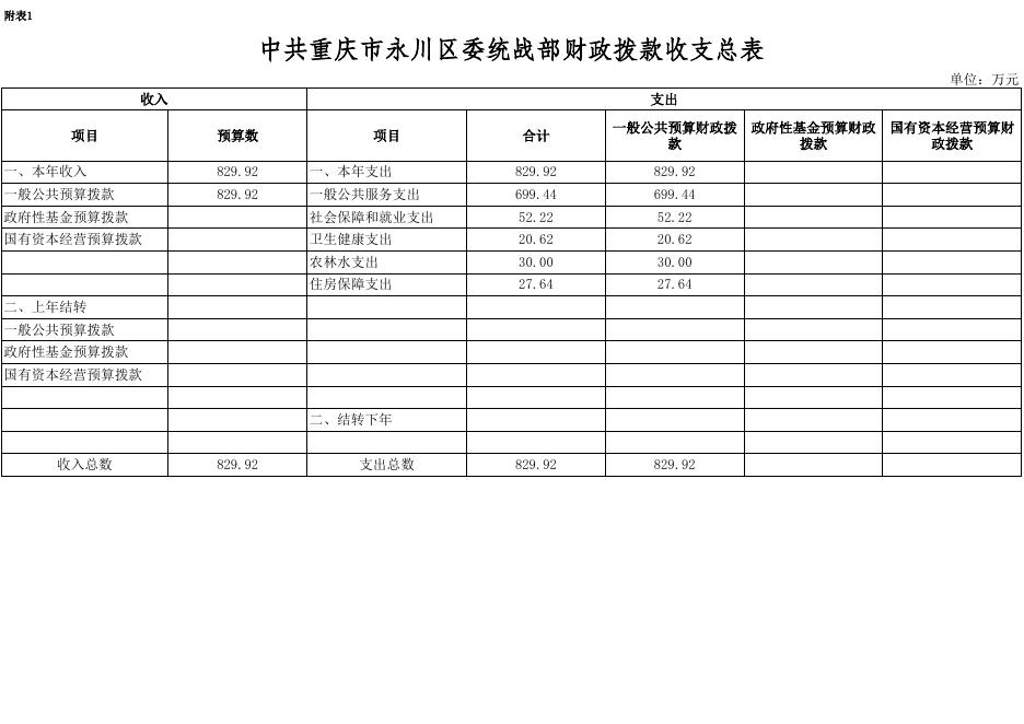中共重庆市永川区委统战部2021年部门预算公开表.xlsx