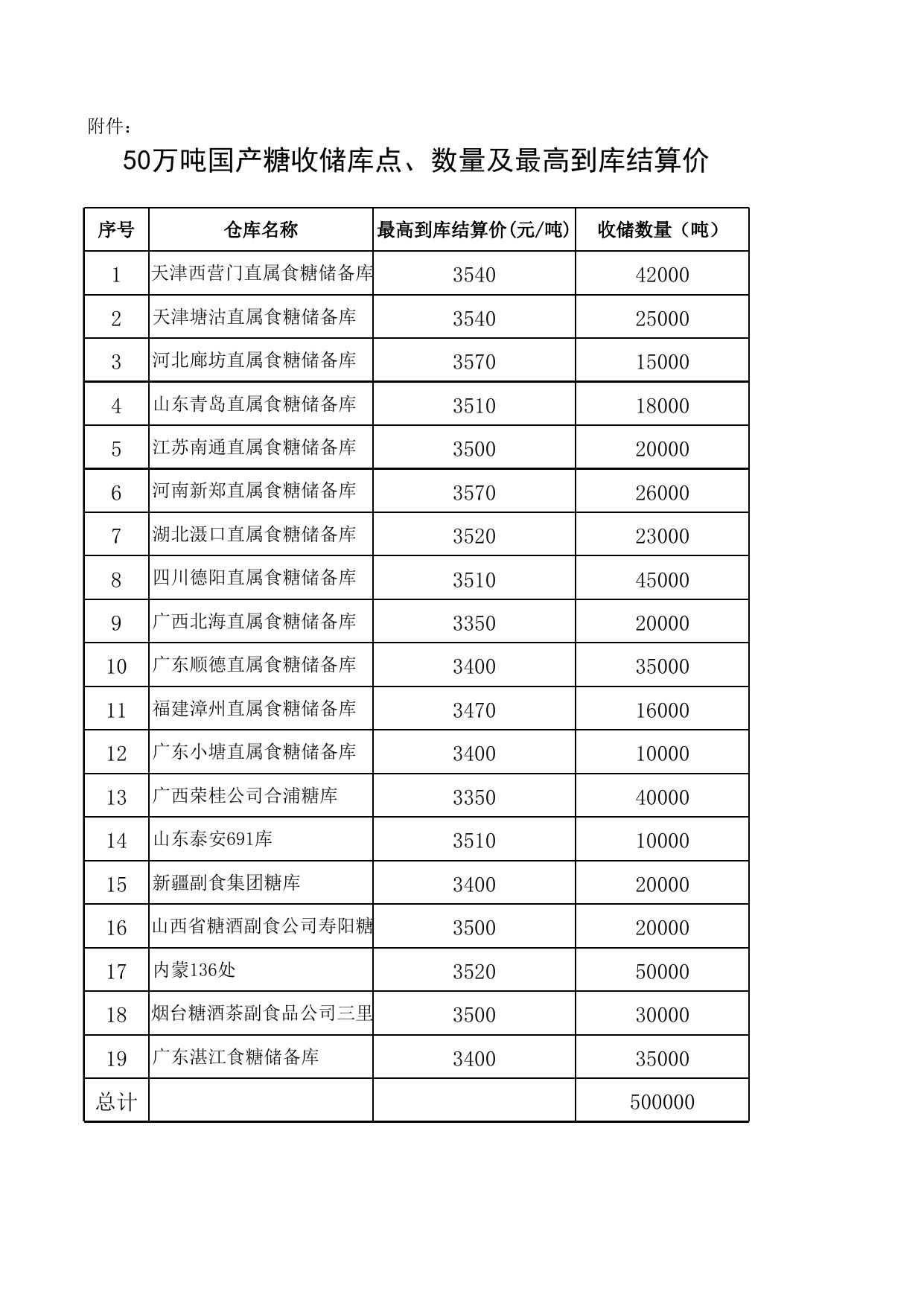 50 万吨国产糖收储库点、数量及最高到库结算价.xls