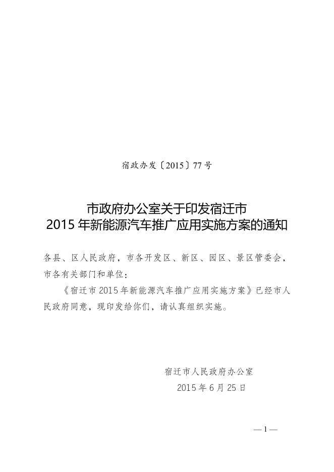 宿政办发[2015]77号新能源汽车实施方案(报政府办).docx