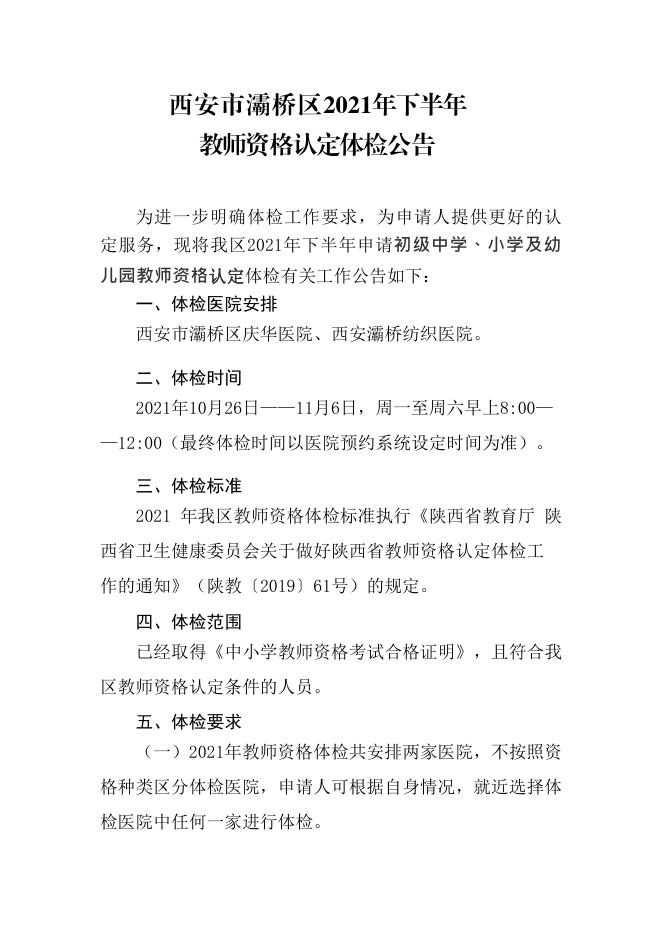 西安市灞桥区2021年下半年教师资格认定体检公告.pdf