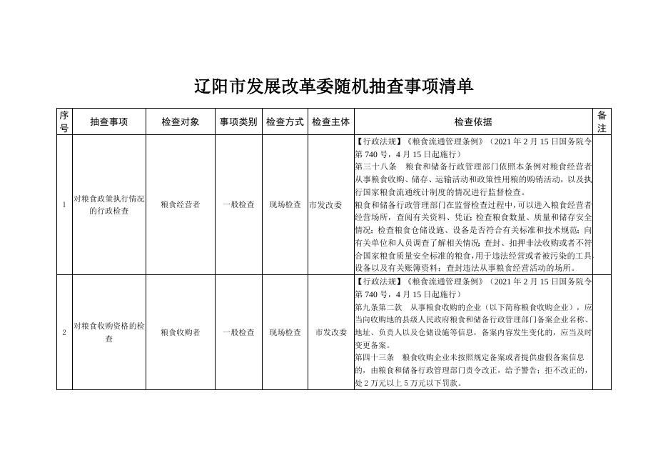 辽阳市发展改革委随机抽查事项清单.docx