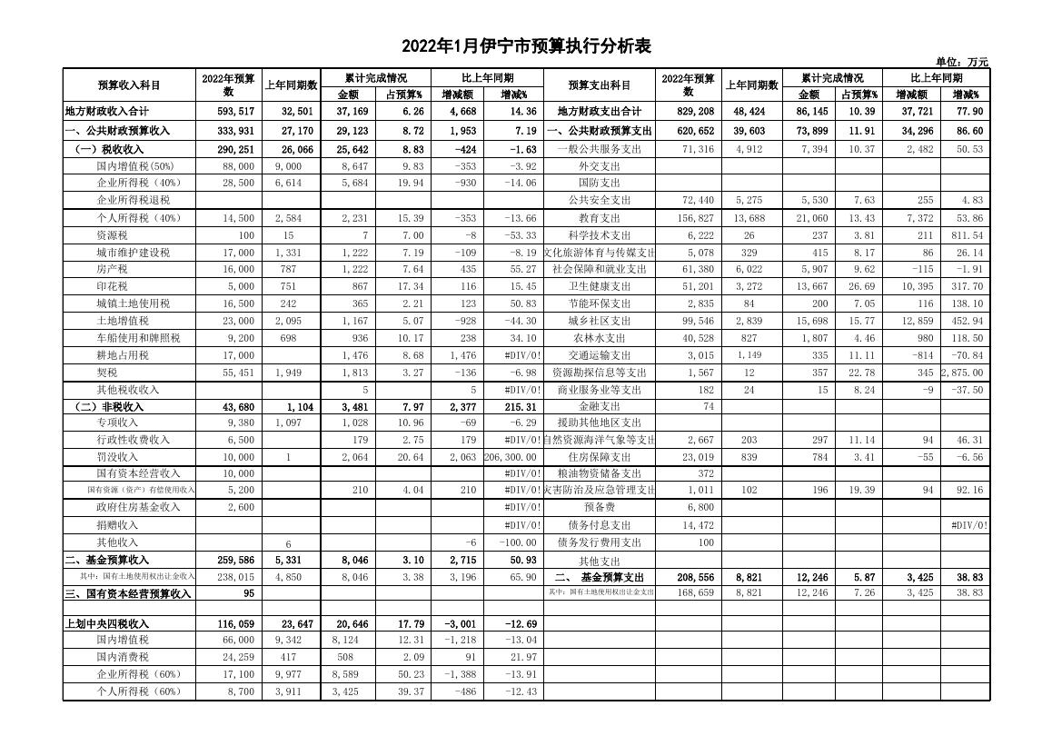 伊宁市2022年1月预算执行分析表.xls