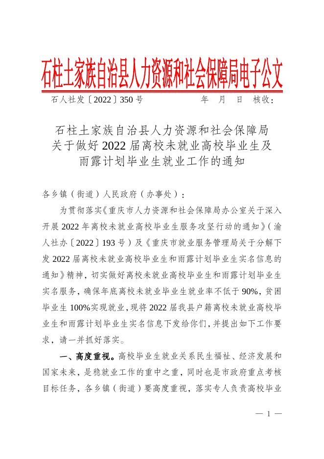 石柱土家族自治县人力资源和社会保障局关于做好2022届离校未就业高校毕业生及雨露计划毕业生就业工作的通知.docx
