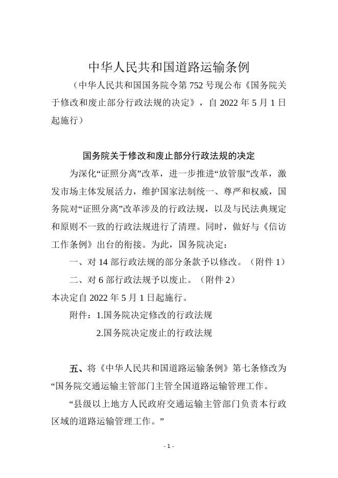 【行政法规】中华人民共和国道路运输条例.doc