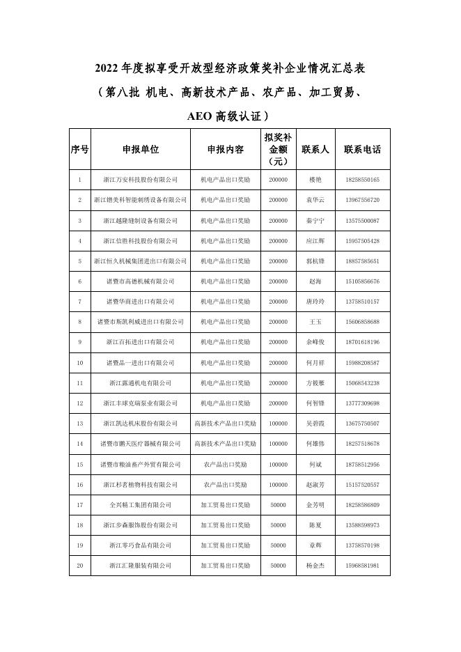 2022年度拟享受开放型经济政策奖补企业情况汇总表(第八批 机电、高新技术产品、农产品、加工贸易、AEO高级认证).pdf