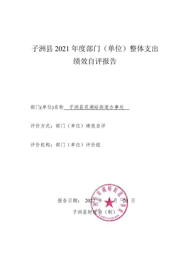 子洲县双湖峪街道办2021年部门整体支出和项目支出绩效自评.pdf
