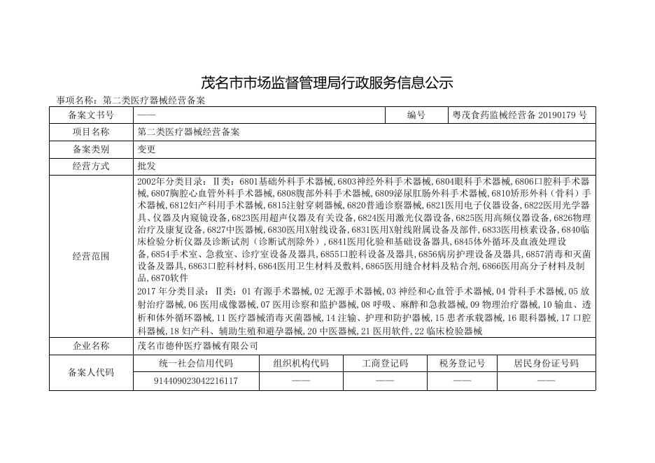 第二类医疗器械经营备案变更【茂名市德仲医疗器械有限公司,20230327】.doc