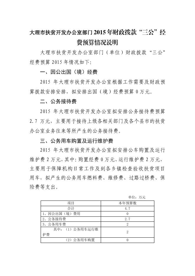 大理市扶贫开发办公室2015年财政拨款“三公”经费预算公开.pdf