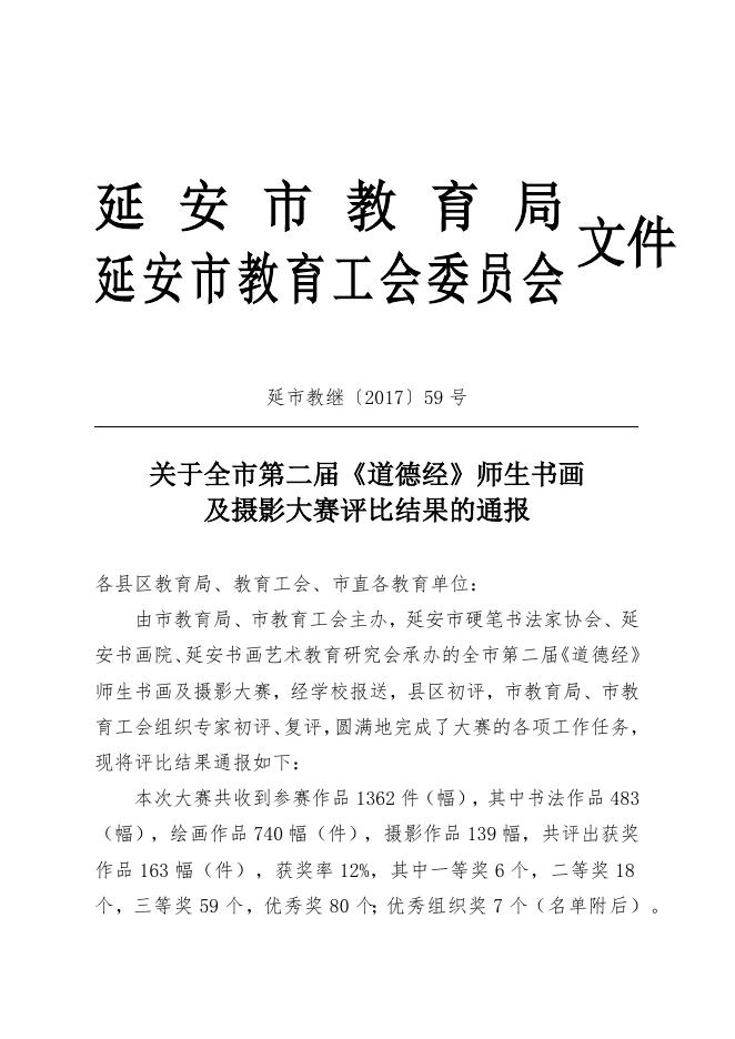 关于全市第二届《道德经》师生书画及摄影大赛评比结果的通报.docx